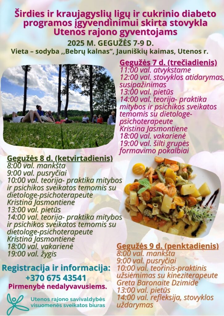 Širdies ir kraujagyslių ligų ir cukrinio diabeto programos įgyvendinimui skirta stovykla Utenos rajono gyventojams
