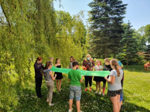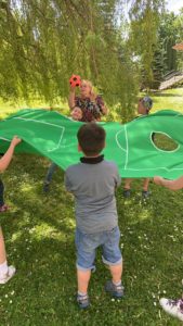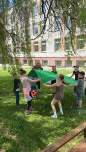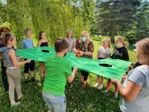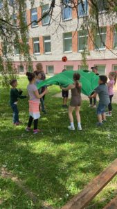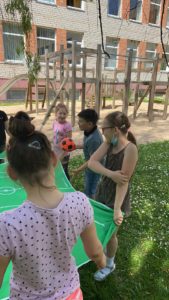Vasara – tinkamiausias metas kuo daugiau laiko praleisti gryname ore. Todėl Saldutiškio pagrindinės mokyklos pradinukai suskubo į lauką išbandyti naują futbolą su visuomenės sveikatos specialiste Audrone. Gal kiek ir keista, kad futbolo aikštelę galima paimti į rankas, o kamuolį reikia nuridenti į skylę varžovų aikštelės pusėje, tačiau labai smagu! Pajudėjus, pasportavus labai skanus ir tyras vanduo, kurį dar smagiau gerti iš naujų gertuvių.