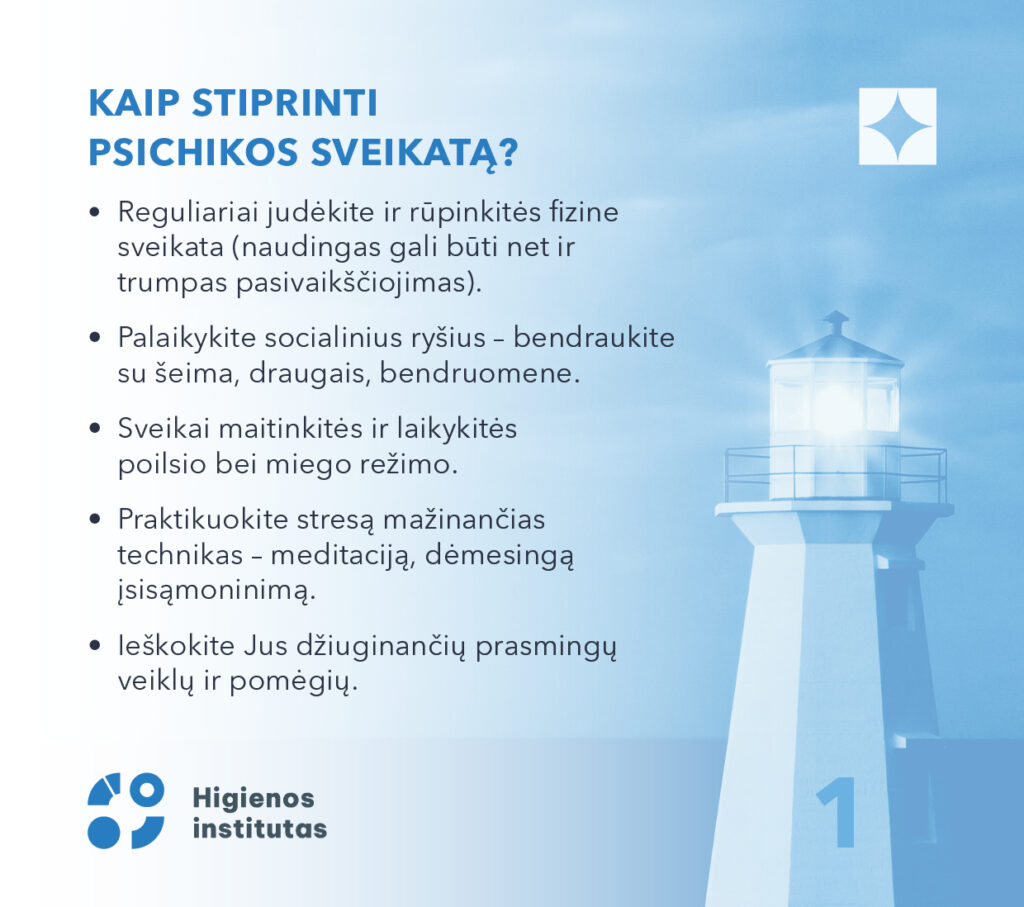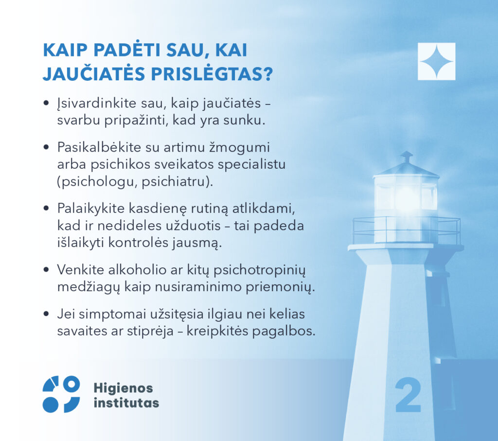 · internetinėje platformoje pagalbasau.lt galima rasti patikimos informacijos, praktinių priemonių emocinei savijautai stiprinti bei pagalbos galimybių žemėlapį;