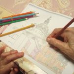 Vienos dalyvės ypač kruopščiai, išlaikant spalvinį vientisumą, dermę, kūrė savo paveikslus. Kitos – tiesiog liejo joms patinkančias spalvas, kurios ryškiai keitė naujo paveikslo vaizdą. Svarbiausia, kad visoms buvo gera spalvinti, rinktis pieštukus, jausti jų kvapą bei mėgautis vykstančiu procesu. Tuo pat metu vyko diskusijos apie kažkada lankytas, pažintas Vilniaus vietas, apie pokyčius ir ten slypinčius netikėtumus.