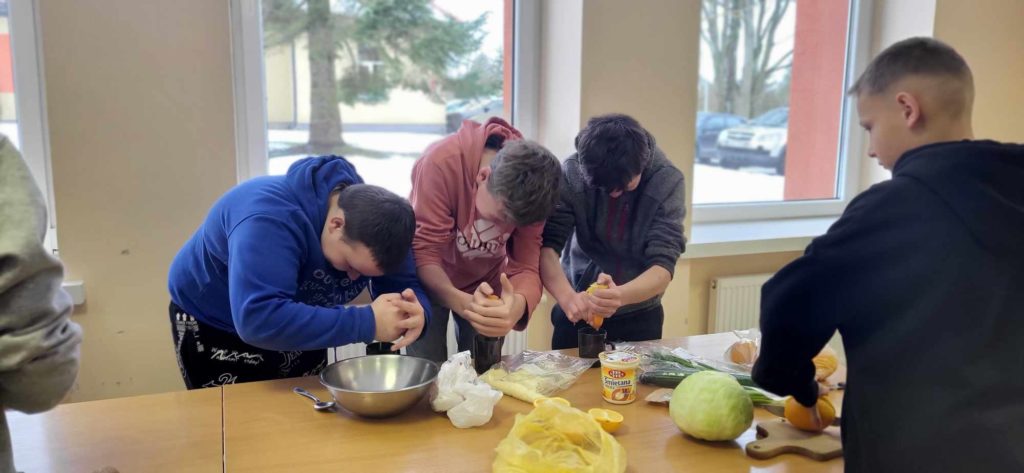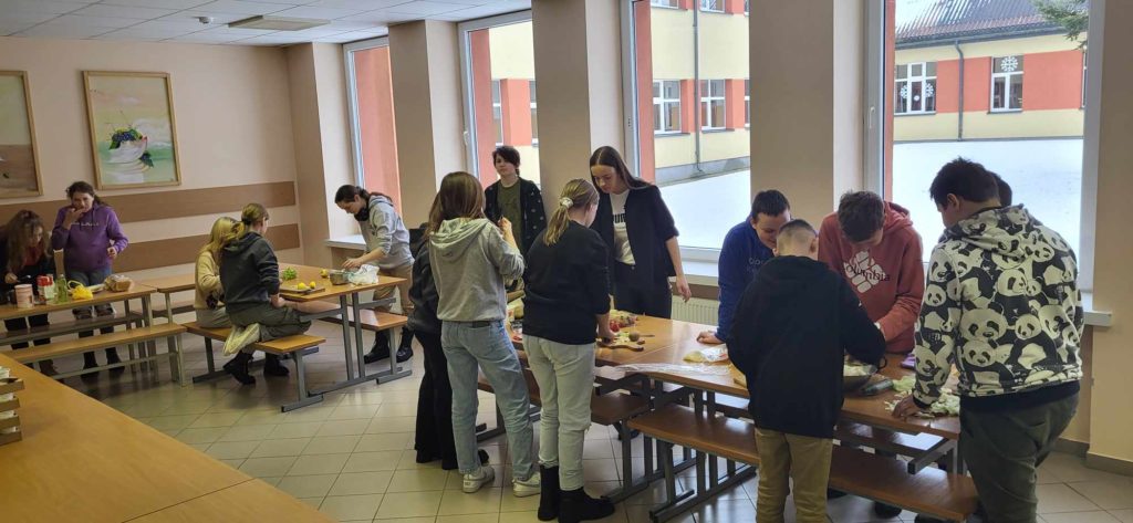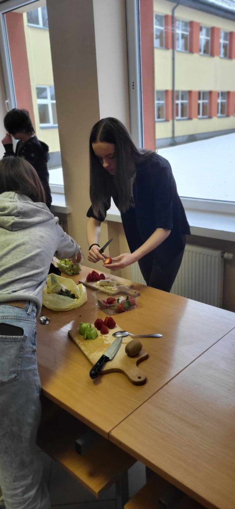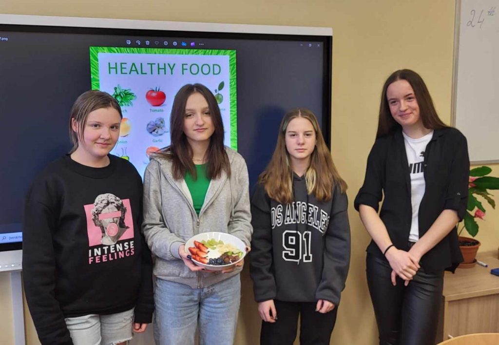 Sausio 24 d. Alantos gimnazijos 7 klasės mokiniams anglų kalbos pamoka vyko kitaip. Pamokos tema – ,,Sveika ir subalansuota mityba”. Kartu su mokytoja Ingrida pamokoje dalyvavo ir visuomenės sveikatos  specialistė, vykdanti sveikatos priežiūrą mokykloje, kuri suteikė informaciją apie sveiką mitybą, priminė sveikos mitybos principus, supažindino su sveikatai palankaus maisto pasirinkimo piramide. Po to visi žiūrėjo filmuką ,,Sveika mityba” ir jį aptarė. Mokiniai, iš anksto susiskirstę į grupes ir pasirūpinę receptais bei reikalingais produktais, gamino sveikuoliškus patiekalus / užkandžius. Pamokos pabaigoje anglų kalba pristatė savo gaminius, naudotus ingredientus ir kodėl jų pagamintą  patiekalą  valgyti yra sveika. Valgydami savo pagamintus patiekalus, mokiniai diskutavo apie sveikatą, mitybą, dietas.