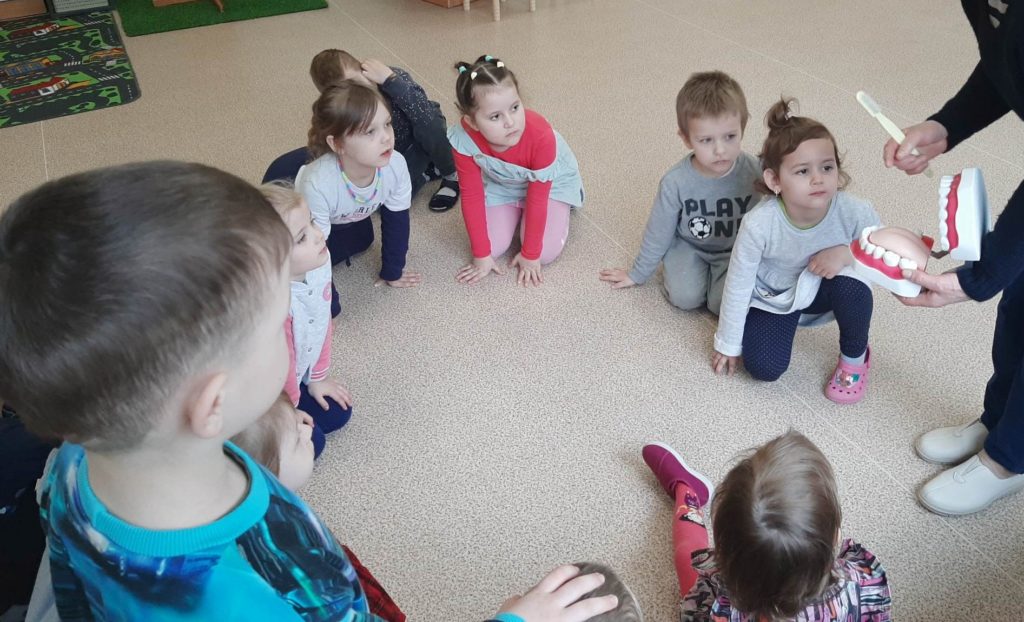 išsaugotum stiprius ir sveikus, praktikavosi taisyklingai valyti ir atliko užduotėles. Dovanų gavo po dantų šepetuką.