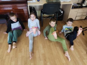 Grupėse lankėsi visuomenės sveikatos priežiūros specialistė Žydrūnė, ji vaikams parodė pratimus taisyklingos laikysenos gerinimui, pamokė taisyklingo sėdėjimo prie stalo, įvertino vaikams skirtų baldų atitikimą pagal vaikų ūgį bei amžių.