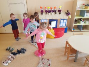 Utenos vaikų lopšelyje – darželyje „Voveraitė“ balandžio 25 – gegužės 9 d. visose grupėse vyko ugdomosios veiklos taisyklingos laikysenos ir plokščiapėdystės prevencijai. Jų metu vaikai atliko įvairius pratimus skirtus stiprinti kojų pėdų raumenis bei raiščius, laikyseną ir nugaros raumenis.