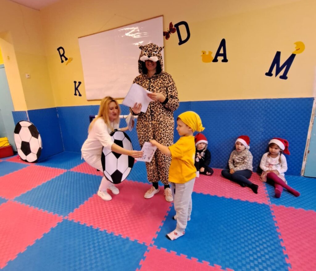 Futbolo simboliais pasidabinusi eglutė, kurią papuošė darželio vaikai visus kvietė į kalėdinį „Futboliuko“ festivalį. Sporto šventėje dalyvavo „Futboliuko“ logotipų kūrėjai. Visiems už kūrybą ir dalyvavimą parodoje Utenos rajono savivaldybės visuomenės sveikatos biuras padovanojo knygeles. Po apdovanojimų vyko draugiškos futbolo rungtynės.