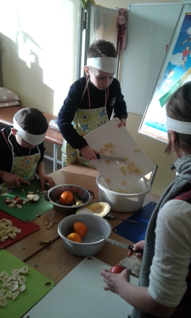 Vasario mėn. tęsėmė sveikatingumo savaitės užsiėmimus ir su pirmų ir antrų klasių mokiniais pasikartojome sveikos mitybos pasirinkimo piramidės pagrindinius principus, aiškinomės kokie patiekalai patinka mokiniams, kuo mokinių pasirinkti patiekalai sveiki, o ko reikėtų vengti. Virėme Jaunystės košę. Šios košės pagrindą sudaro sorų kruopos ir moliūgo gabaliukai. Košė paskaninta džiovintais vaisiais: razinomis, abrikosais ir šlakeliu alyvuogių aliejaus. Ragavome. Mergaitėms košė patiko, berniukai buvo santūresni. Dalinomės košės receptu.