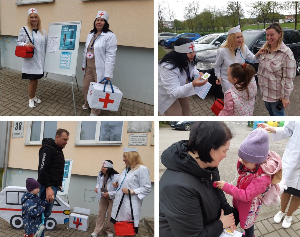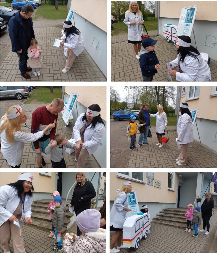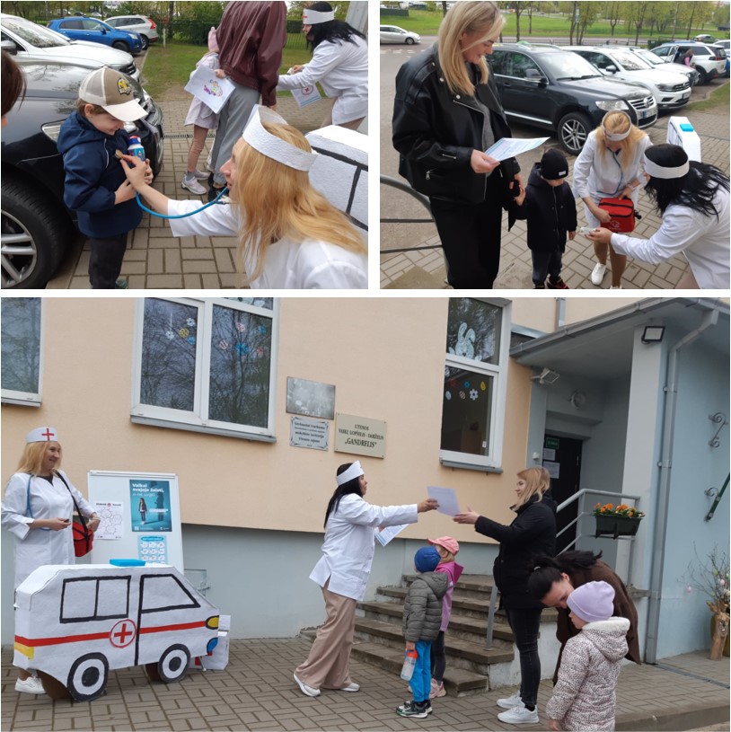 2025 m. balandžio 25 d. paminėjome labai gražią ir prasmingą šventę – medicinos darbuotojų dieną. Utenos vaikų lopšelio-darželio „Gandrelis“ bendruomenė dėkoja visiems medicinos darbuotojams ir linki ištvermės jų sunkiame kasdieniame darbe. Medikų rankos pirmiausiai paliečia kai ką nors skauda, jų rūpestinga širdis visada jaučia pacientų sveikatos nusiskundimus. Jų patarimai mums visada svarbūs ir atneša pagalbą, palengvėjimą, išgijimą. Periodiškai Utenos vaikų lopšelio–darželio „Gandrelis“ bendruomenėje kalbama apie sveikatą ir užkrečiamas ligas. Šiandien kiekvienas tėvelis, atvedęs vaiką į darželį, buvo pakalbintas ir paklaustas ar atėjo sveiki, ar visada laikosi asmens higienos, ar žino čiaudėjimo – kosėjimo etiketus ir moka juos taikyti. Buvo dalinami informaciniai lankstinukai apie užkrečiamas ligas bei smagios dovanėlės – šventiniai muiliukai. Akciją organizavo ir medicinos personažais vaidino visuomenės sveikatos specialistė Kristina Jasiūnienė kartu su Utenos vaikų lopšelio-darželio „Gandrelis“ socialine pedagoge Rūta Paukštiene. Šia akcija tikimės atkreipti dėmesį, kad sveikata yra didžiausia vertybė ir kad džiaugiamės medikų darbais ir pašaukimais!