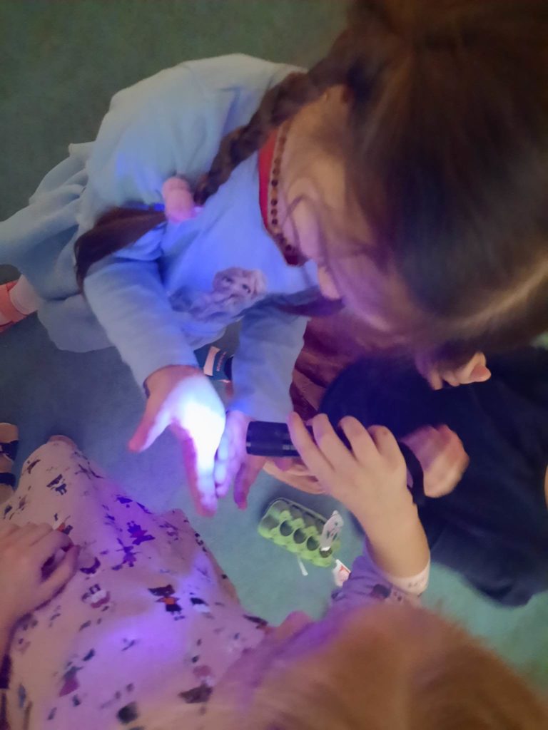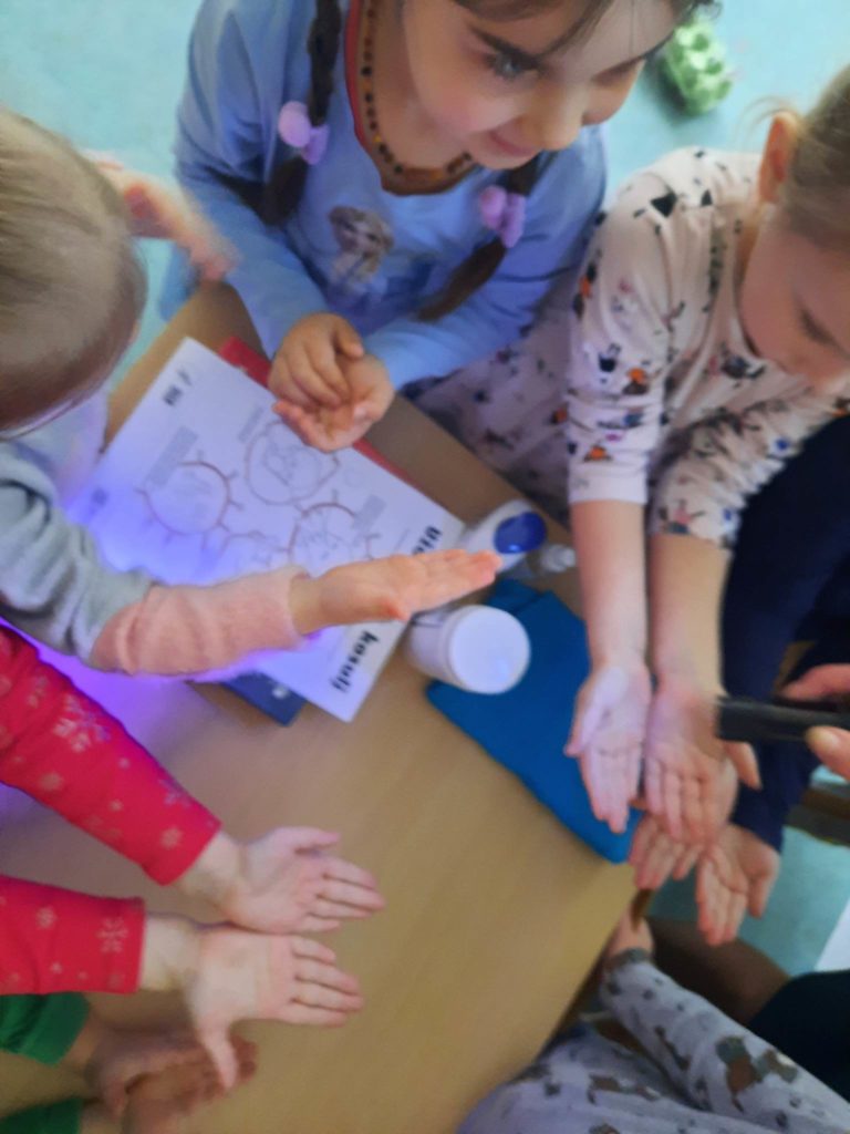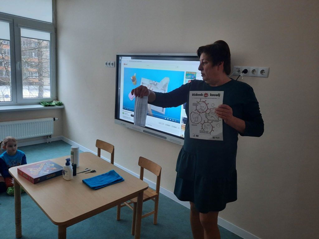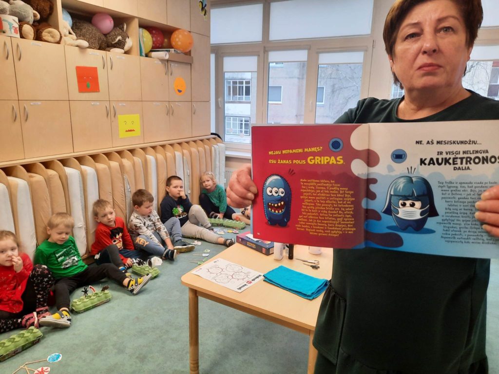 Utenos lopšelio – darželio „Pasaka“ „Žiedelių“ grupės ugdytiniai kartu su ikimokyklinio ugdymo mokytojomis ir visuomenės sveikatos priežiūros specialiste kalbėjosi apie mikrobus. Veiklų metu vaikai aiškinosi, kokie jie būna, kur gyvena. Pažiūrėję mokomąjį filmuką apie virusus sužinojo, kokiais būdais jie plinta ir dauginasi, kaip patenka į mūsų organizmą. Vaikai atliko eksperimentą, tapdami tikrais mikrobų detektyvais: pasitelkę „mikrobų“ miltelių ir ultravioletinio žibintuvėlio pagalba ieškojo pasislėpusių mikrobų ant rankyčių bei stebėjo, ar įmanoma mikrobus nuplauti tik su vandeniu, ar visgi reikalinga ir muilo pagalba. Na, o prisiminę tinkamas rankų plovimo taisykles ir pasižadėję laikytis kosėjimo ir čiaudėjimo rekomendacijų, vaikai skubėjo atlikti kūrybinių užduotėlių, žaisti stalo žaidimo „Virusiukai Sveikatukai“.
